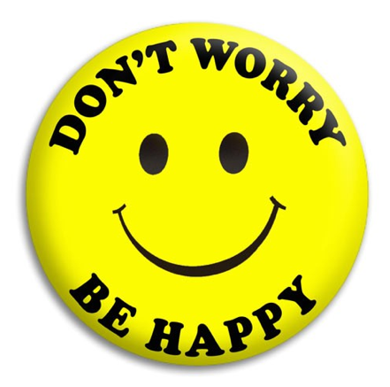 lighter attitude – they had yellow smiley faces on them with the saying, “Don’t worry…be happy.” While she appreciated her son’s caring, I’m not sure they diminished her discomfort.